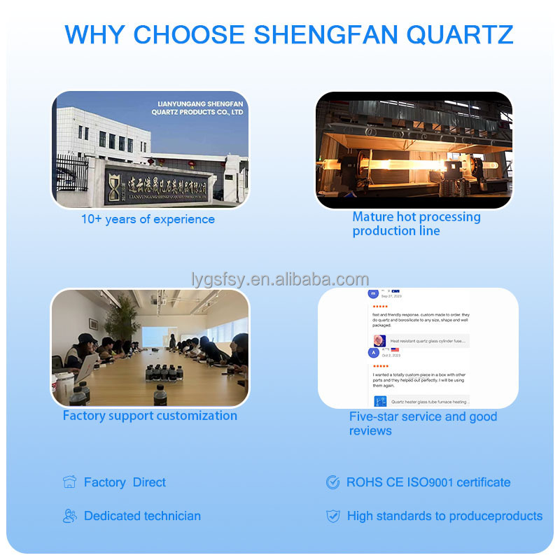 Lianyungang Shengfan Quartz Product Factory - профессиональный производитель, специализирующийся на исследованиях и разработках кварцевых пластин, кварцевых трубок, кварцевых фланцев, кварцевых колец, кювет и кварцевых инструментов. Компания расположена в Китайской столице кристаллов - городе Дунхай, провинция Цзянсу, Китай. 70 км от порта Ляньюньган, удобная транспортировка. Занимая площадь 10000 квадратных метров, в настоящее время у нас работает более 70 сотрудников, а годовой объем продаж превышает 20 миллионов долларов США. Руководствуясь философией ориентации на технологии, качества в первую очередь, честности и ответственности, устойчивой деятельности, компания стремится создать международное предприятие со стандартными и устойчивыми операционными возможностями.